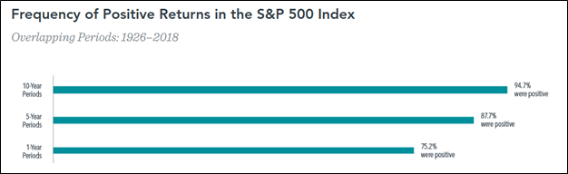 The chart produced by Dimensional illustrates how investors’ odds of generating positive returns improve as the investment horizon lengthens. Fractional shares on Nova can support long-term compounding by making it easier to maintain consistent growth with small, repeatable contributions.