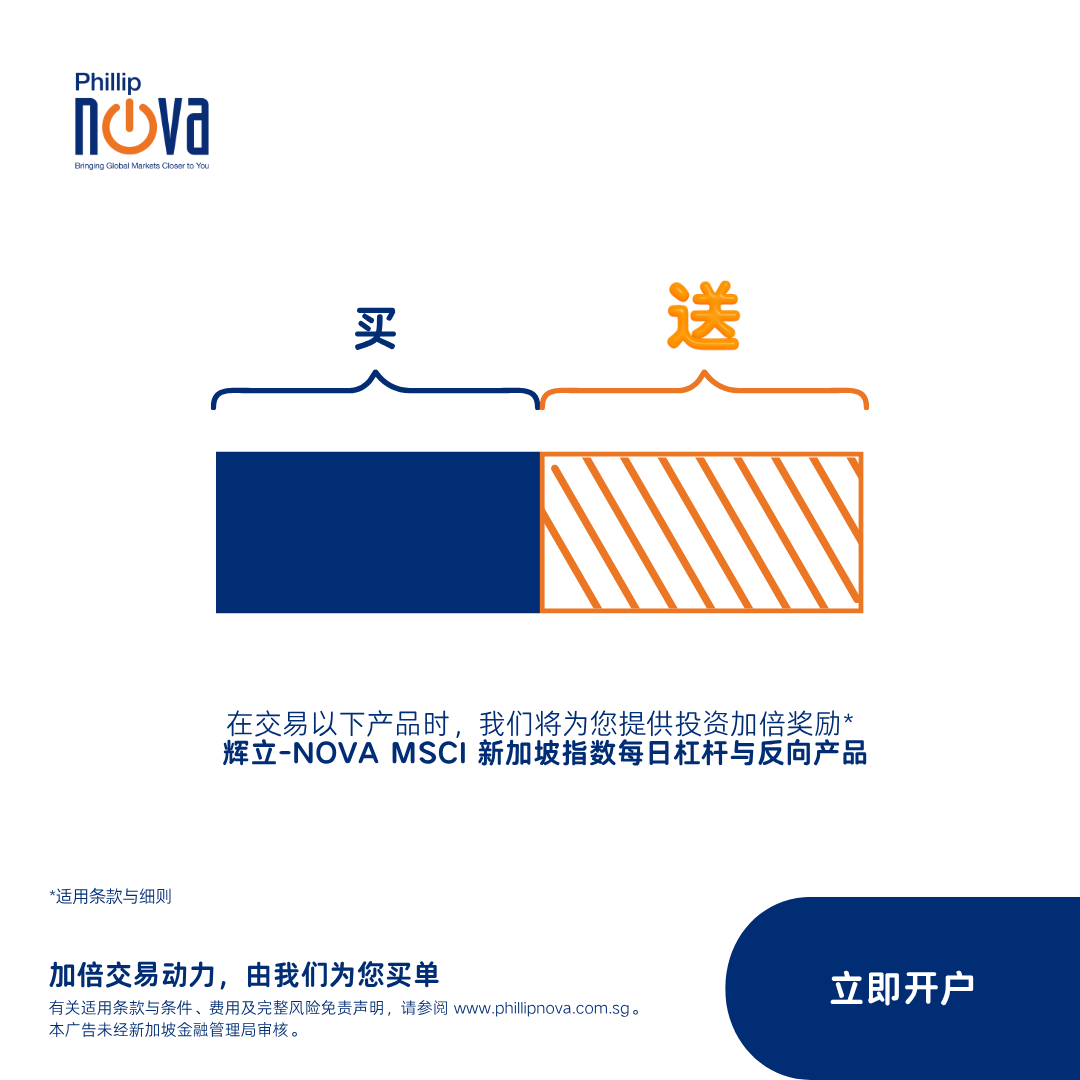 即日起至 2026 年 2 月 28 日,在辉立Nova开立交易账户 即可获赠 10 股 辉立-Nova MSCI 新加坡指数每日 2 倍杠杆交易所交易产品(新交所: LSS)*。.