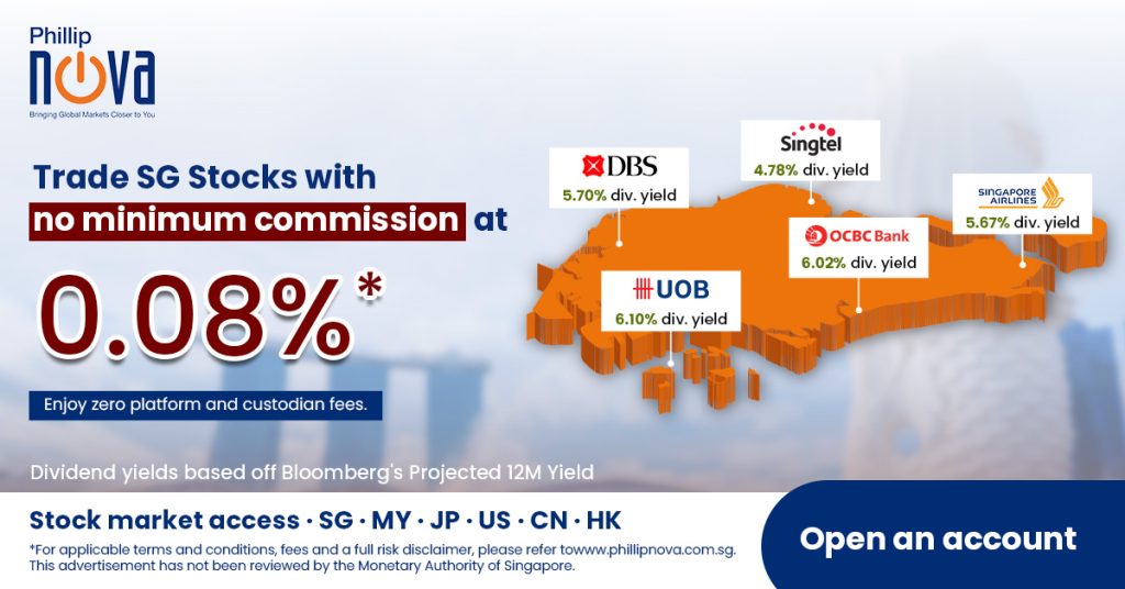 Amid a backdrop of a rising Singapore index, enjoy 0.08% commission with no minimum fee when you trade Singapore stocks on our platform. Click here to open an account now!