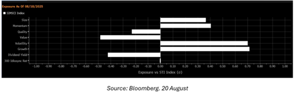 - Hence, the SiMSCI tilts more towards growth and volatility vs the STI, making it a preferred vehicle for investors seeking higher-growth and higher-beta exposure within Singapore equities