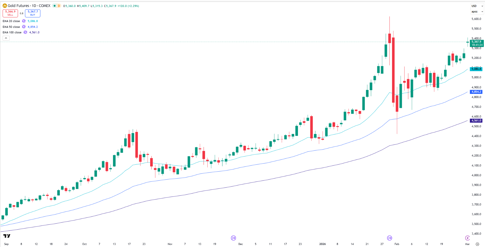 Financial markets initially responded with a classic risk-off shift, with investors moving toward traditional safe-haven assets such as gold. However, despite the seriousness of developments, broader market reactions have so far been measured. Investors appear to be assessing whether the conflict remains regionally contained or risks expanding further.