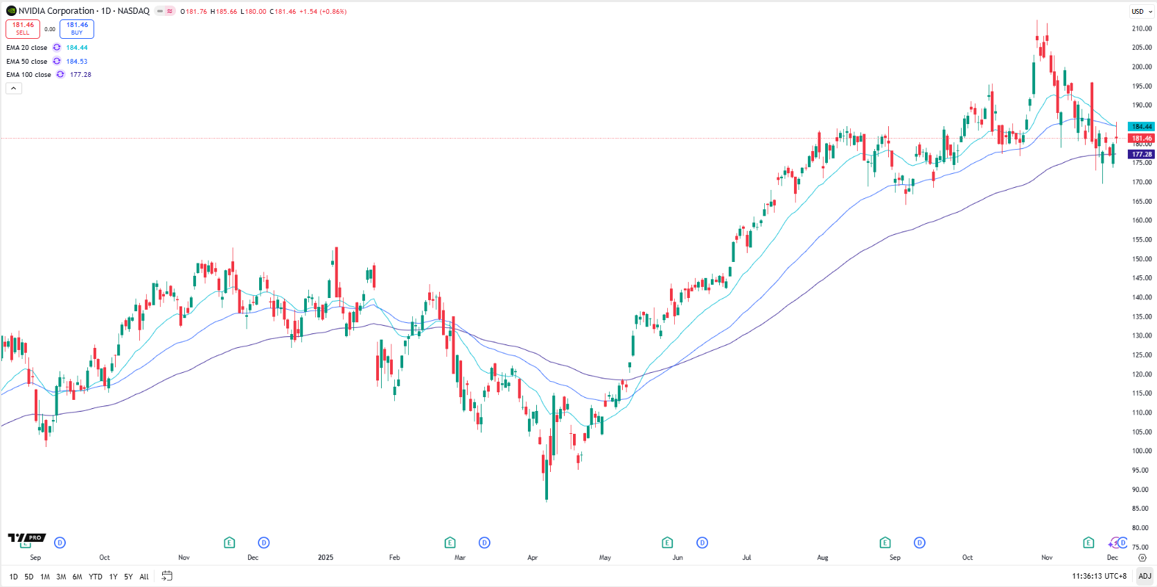 • Strong Analyst Support: The majority of analysts covering the stock remain bullish. According to data on Bloomberg, 74 of the 80 analysts covering Nvidia rate it a Buy, with a consensus price target of $253.